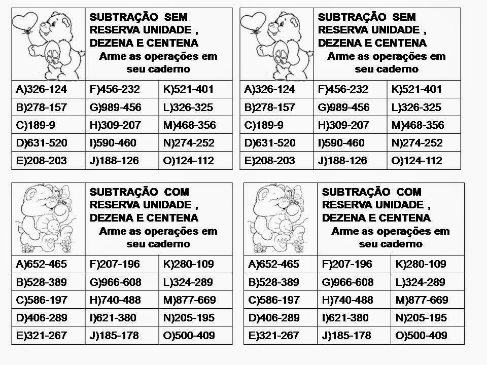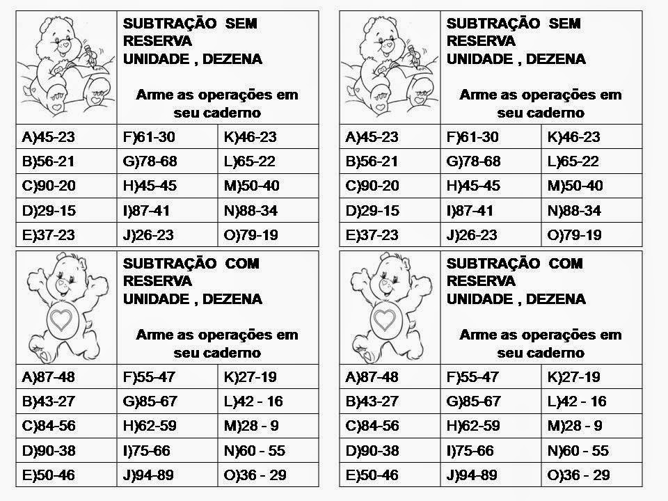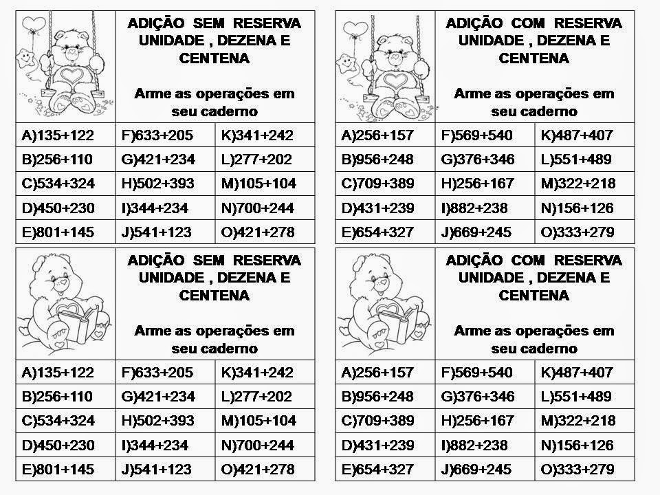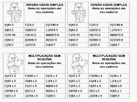 Continhas de adição, subtração, divisão e multiplicação para colar no caderno