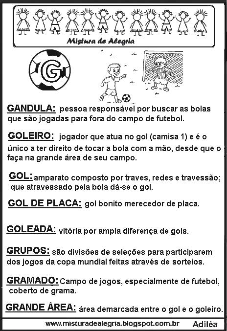 Boa noite! Vejam estas atividades, da Copa mundial de 2022 – dicionário da copa do mundo que eu acabei de criar. Vocês poderão fazer um livrinho e assim explorar bastante todas as palavras na ordem alfabética.
