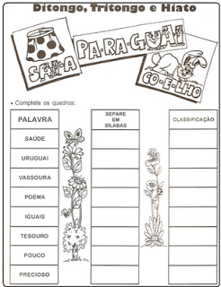 DITONGO TRITONGO HIATO ATIVIDADES EXERCÍCIOS PARA IMPRIMIR