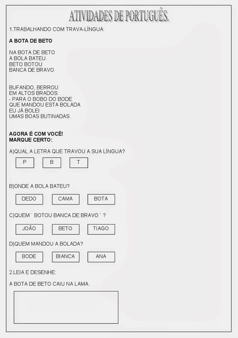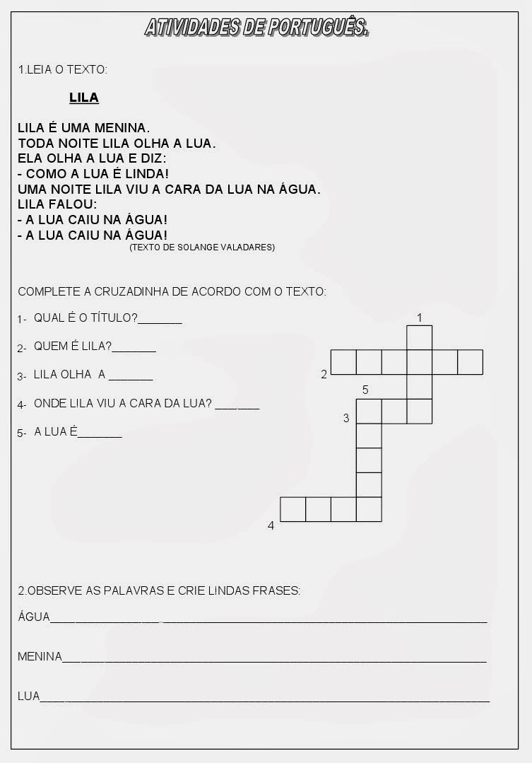 Diversas atividades|Exercícios de MAtemática e de Português para o 1ºano