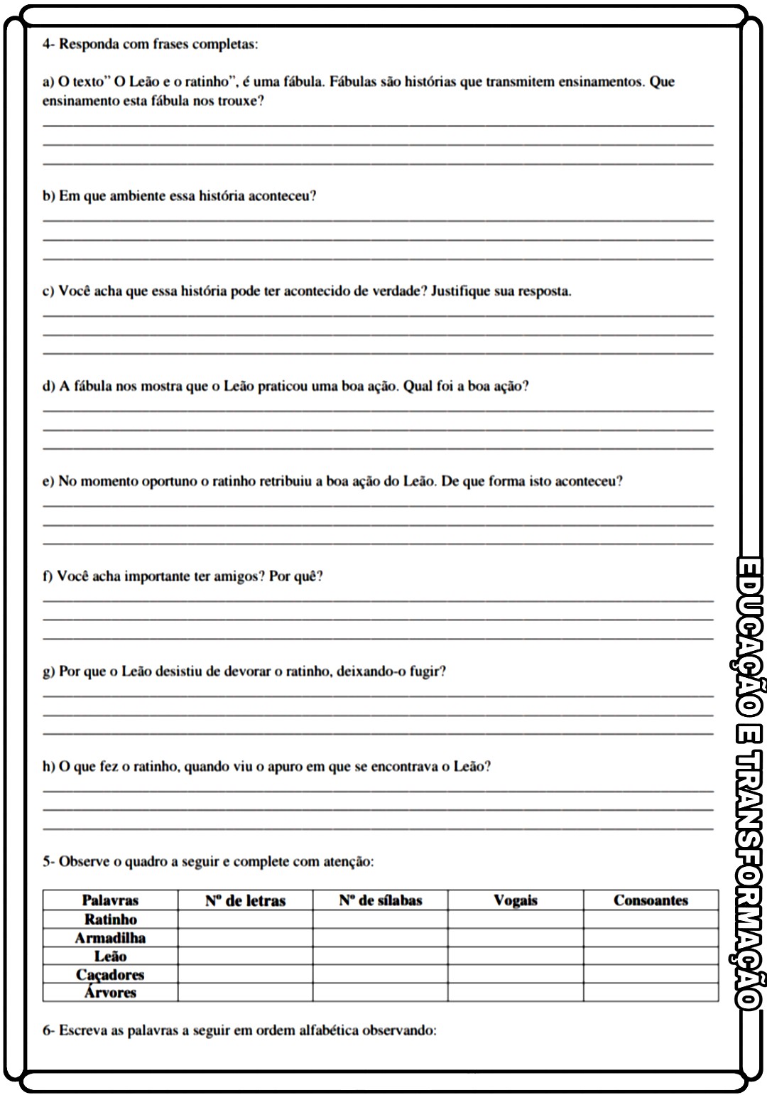 Fábula: O leão e o ratinho Leitura com interpretação de fábula e estudo da gramática…