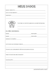Para isso podemos enviar uma ficha para os pais ou responsáveis preencherem.