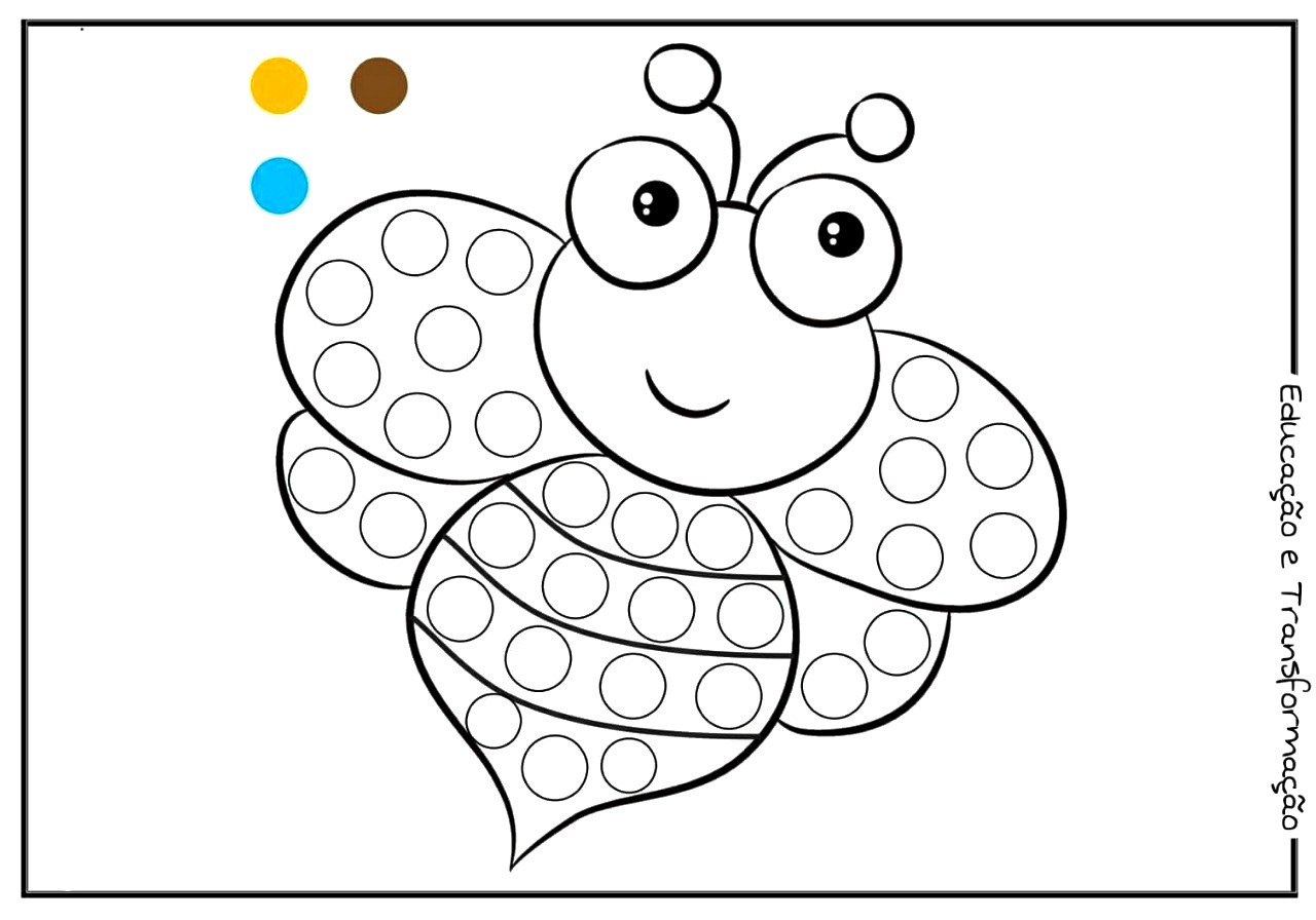 Fichas para pintura com os dedos Esse material também pode ser usado de diversas formas. Algumas ideias: -> completar com bolinhas de massa de modelar ou papel; -> colar lantejoulas ou círculos de papel; -> pintar com a ponta dos dedos ou cotonete… Enfim, use e abuse da criatividade!