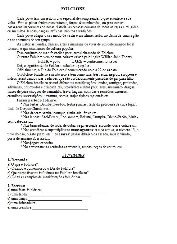 FOLCLORE – DESENHOS E ATIVIDADES PRONTOS PARA IMPRIMIR – PARTE I