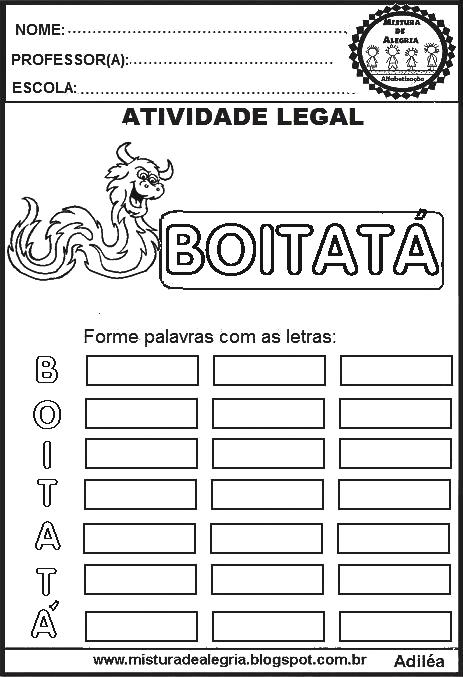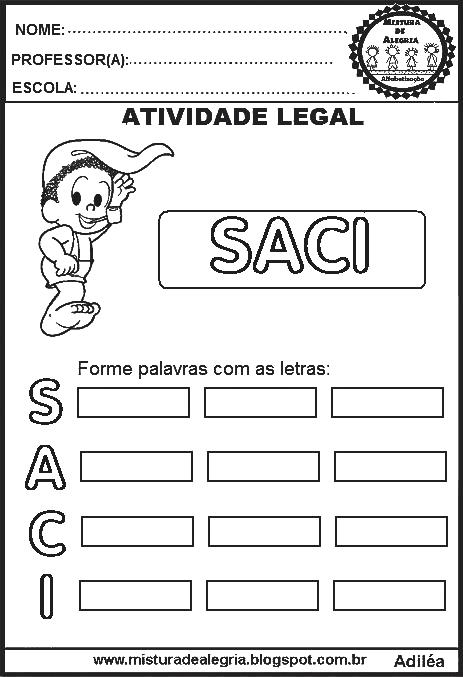 Boa noite amigos! Estas atividades para alfabetização, formação de palavras atividades – folclore,poderãoservir comotarefas de casa.