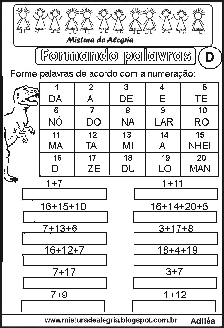 Se o aluno souber formar outras palavras peça para escrever as palavras em seu caderno de aula.