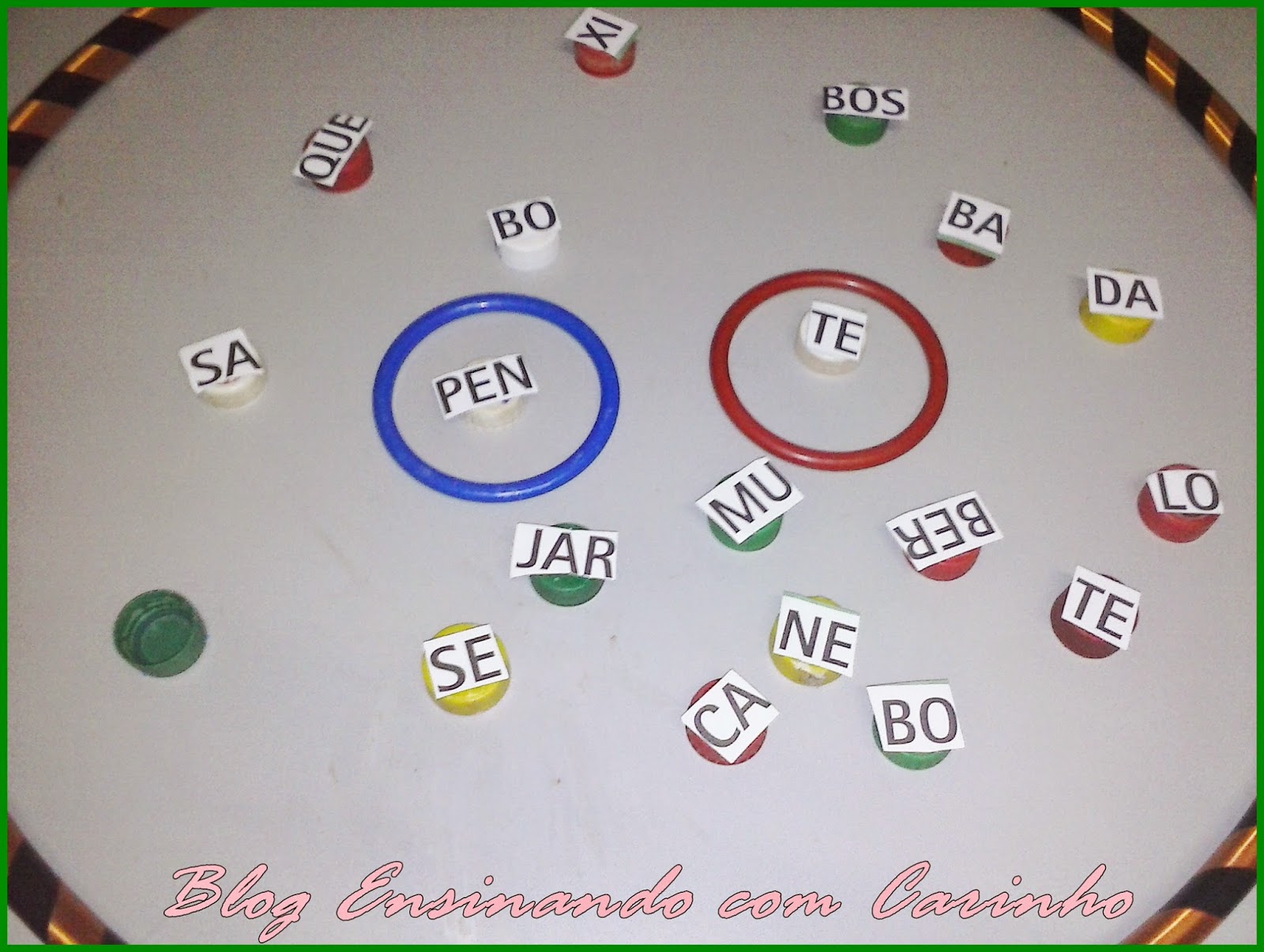 Selecione algumas palavras do texto apresentado e imprima as palavras e cole-as em sílabas nas tampinhas de refrigerante.