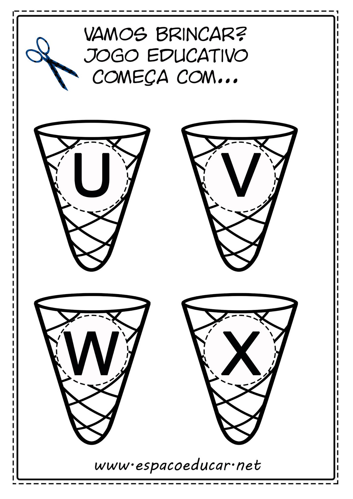 Deixamos também sorvetes em branco, para que seja possível ilustrar também e preencher com as letras, tornando a atividade mais pessoal e dando espaço à criatividade.