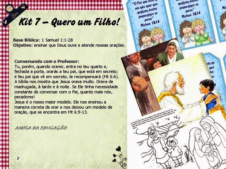 KIT BÍBLICO PARA AULA DE ENSINO RELIGIOSO. AULA EU QUERO UM FILHO.