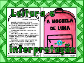 A leitura e interpretação de texto fala sobre uma menina chamada Luna, que faz aniversário e pede para a mamãe, uma mochila de presente.