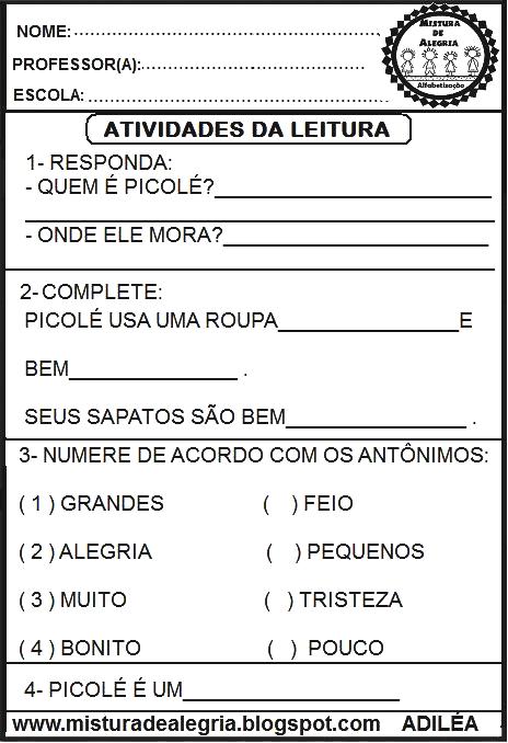 Leitura e interpretação alfabetização – atividades gratuitas