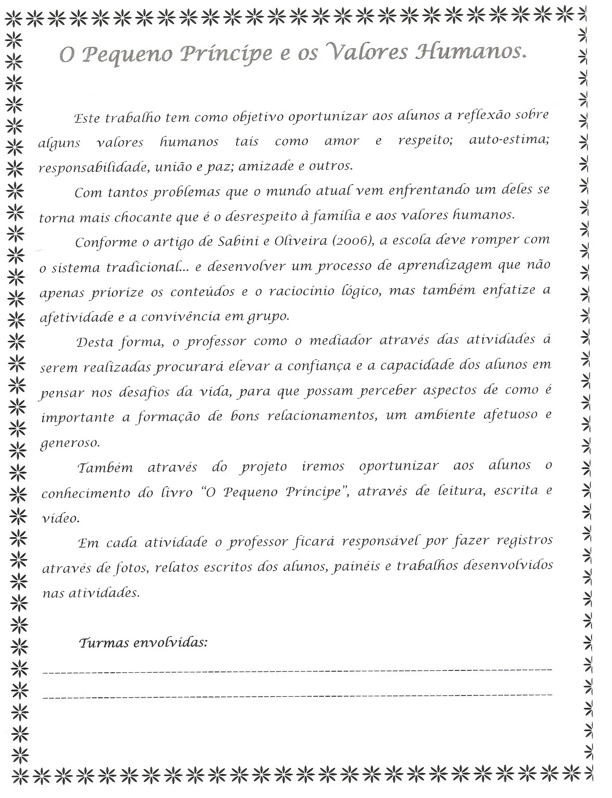 Parte 5 (Final) – Projeto Pequeno Príncipe e os Valores Humanos!
