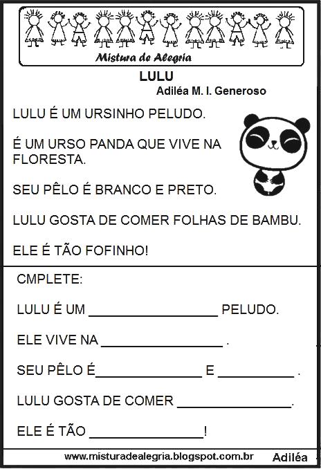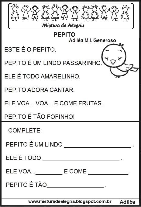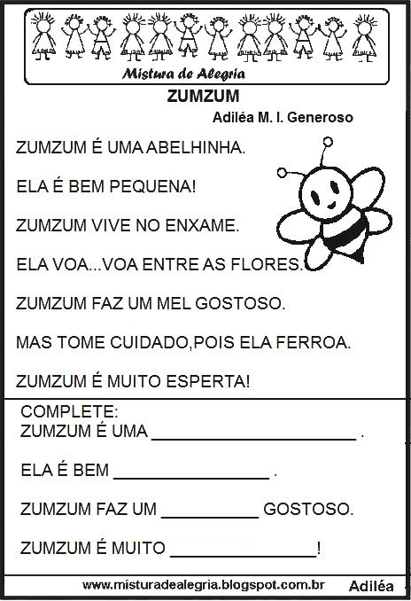 Pequenos textos para alfabetização 1º ano.