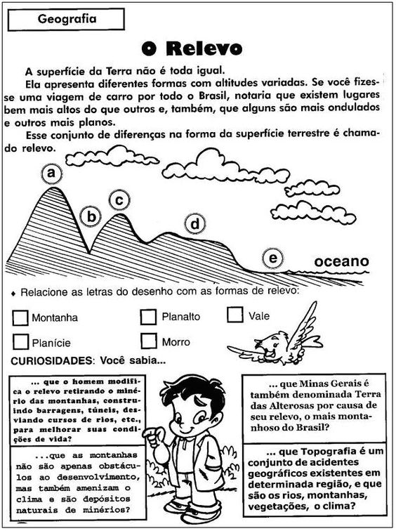 Conteúdos: Relevo do Brasil, Interpretar textos e resolver situações problemas