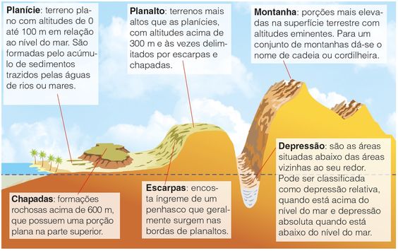 – Quais são as formas de relevo existentes?