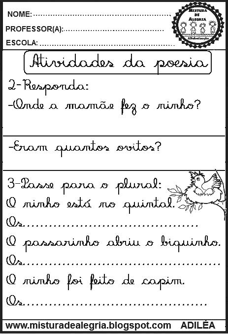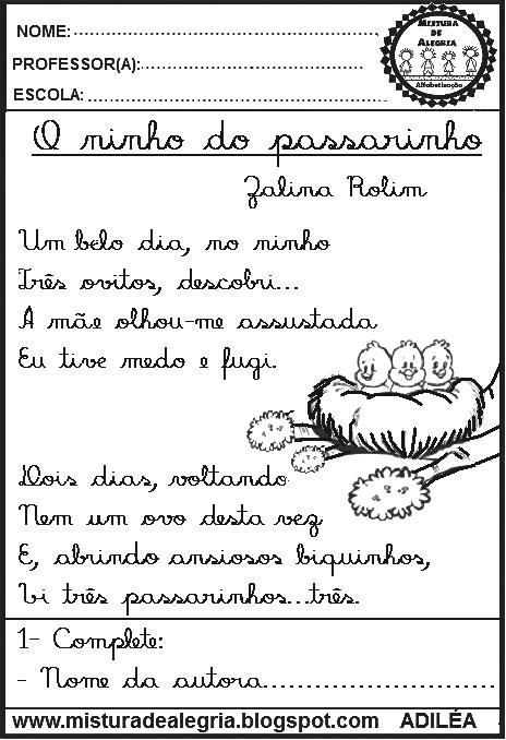 Estas atividades com poesia estão produzidas com a letra cursiva, pois, a caligrafia dos alunos deve ser bem traçada e exige bastante atenção, para que ele desenvolva a habilidade de escrita e que seja de forma legível.