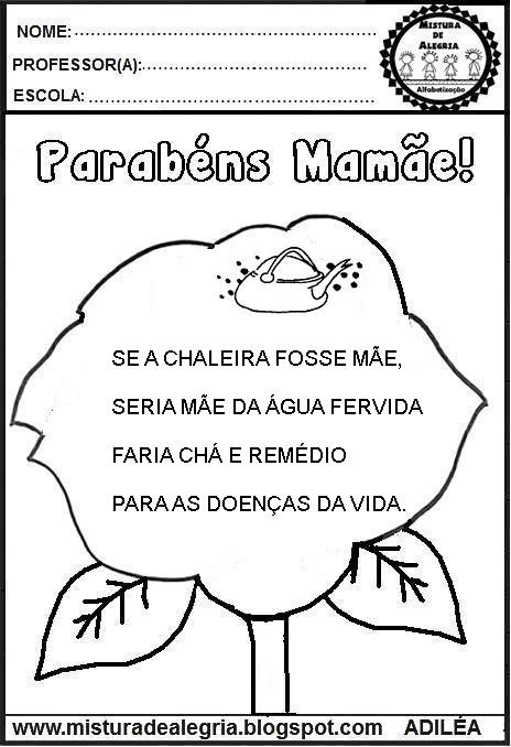 É uma atividade interativa, que acabei de fazer, com o desenho de uma rosa com uma poesia dedicada para a mamãe, onde a autora Sylvia Orthof, cita algumas comparações se as coisas fossem mães.