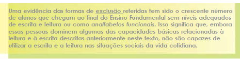 efetivos índices de fracasso do sistema educacional, produzindo uma nova forma de exclusão dos alunos, ao permitir seu avanço no sistema de ensino sem que lhes seja assegurada a devida aprendizagem dos conteúdos e capacidades pertinentes a cada nível de escolarização.