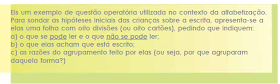 da criança ou sua leitura de um texto. Torna-se possível, assim, compreender as hipóteses espontâneas da criança e as elaborações conceituais propiciadas pelas intervenções dos adultos que com ela interagem, em torno das capacidades em construção.