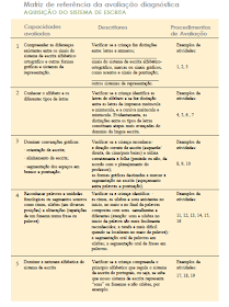 A matriz de referência da avaliação diagnóstica apresenta capacidades que devem ser desenvolvidas ao longo de todo o período considerado, englobando, de forma indissociável, os processos de alfabetização e letramento. Esses dois processos são os focos principais de atenção da matriz.