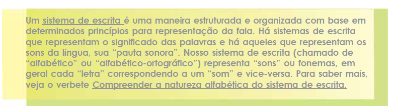 Sabe-se que os três anos iniciais da Educação Fundamental não esgotam essas capacidades linguísticas e comunicativas, que se desenvolvem ao longo de todo o processo de escolarização e das necessidades da vida social. Sabe-se, também que o trabalho a ser feito nesses três anos iniciais não se esgota na alfabetização ou no desenvolvimento dessas capacidades linguísticas. Mas elas são importantes porque é na alfabetização e no aprendizado da língua escrita que vem se concentrando os problemas localizados não apenas na escolarização inicial como também em fracassos no percurso do aluno durante sua escolarização.