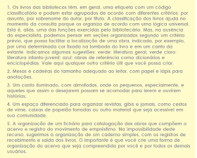 Então, mãos à obra e vamos caprichar na organização de nossa biblioteca, sem esquecer, porém, que o leitor é a parte mais importante dessa história.