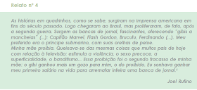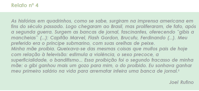 Obviamente a escolha é de cada um. Contudo, a mãe da professora de nossa última história nos parece uma educadora com a visão bastante apurada, não acha? Para complementar a história extraída da experiência com a leitura de Alice no País das Maravilhas, talvez seja mesmo prudente ouvir o que alguns leitores, famosos ou não, relembram sobre diferentes tipos de leitura, especialmente as proibidas, e as modalidades que mais os atraíam.