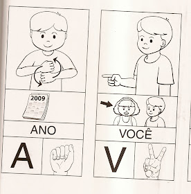 DEPOIS DE TRABALHAR AS LETRAS, NOMES E PALAVRAS SUGERIDOS EM DIVERSOS CONTEXTOS, UTILIZE OS MOLDES E ENSINE OS NUMERAIS E OS SINAIS PARA AS PALAVRAS ANOS, IDADE, EU E VOCÊ.