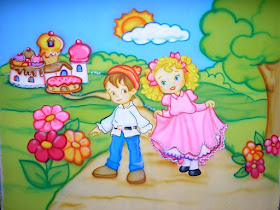 No caso desta saia, foram escolhidas 6 histórias, pq a saia possui 6 babados, em cada babado será colado apenas a imagem dos personagens da história e o título. Para cada história o professor prepara atividades relativas ao assunto. As histórias escolhidas foram: Branca de Neve, O patinho feio, Daniel na cova dos leões, João e Maria, A raposa e a cegonha e A lebre e a tartaruga.