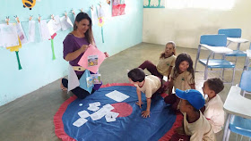 - Dividir a sala em 3 grupos, entregar a história em fatias, para que montem a sequência no varal da sala.