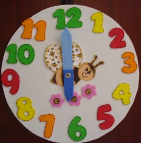 Eis aqui algumas sugestões de relógios para a sala de aula feitos de EVA.
