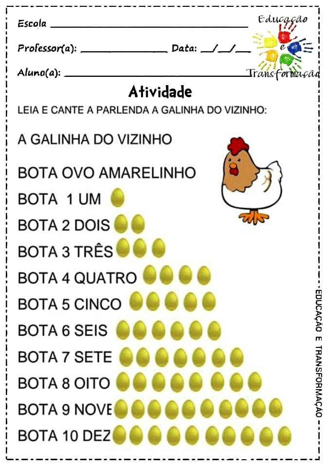 Sequência didática com a parlenda “A galinha do vizinho” Confira as 28 atividades para a educação infantil…