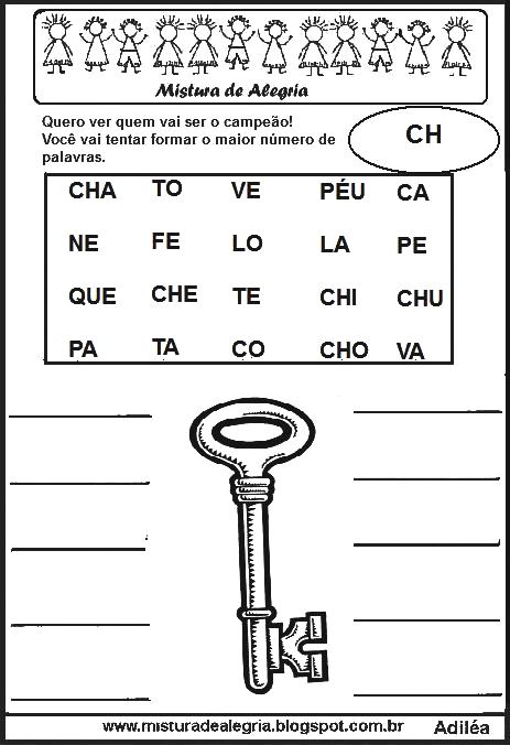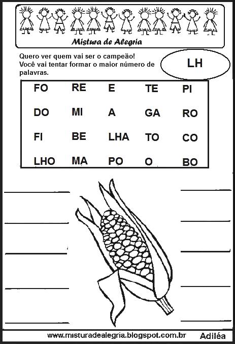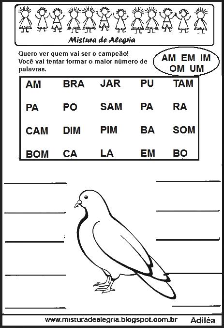 As atividades educativas, formar palavras com letras estão elaboradas com as sílabas iniciais de cada desenho, para que os alunos possam formar 10 palavras.