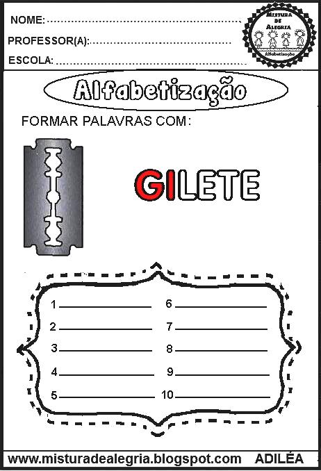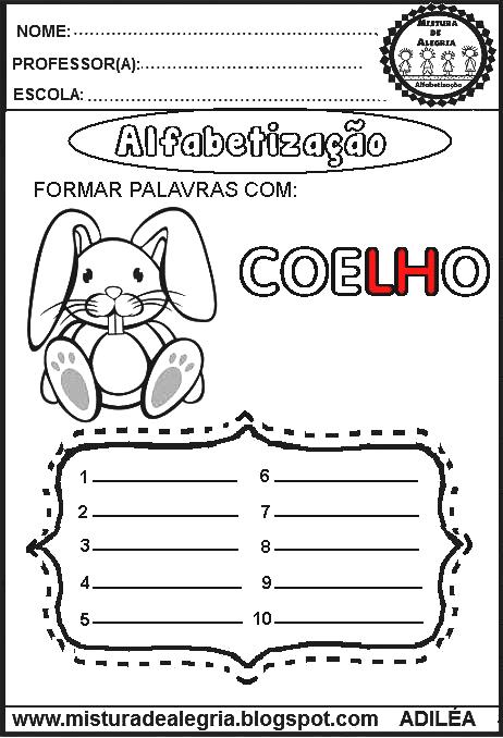 As atividades educativas, formar palavras estão elaboradas com as sílabas complexas de cada desenho, para que os alunos possam formar 10 palavras.
