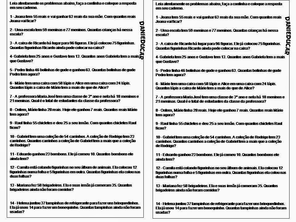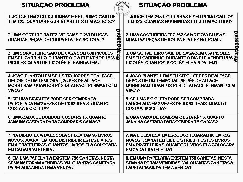 situação problema para 3º ano