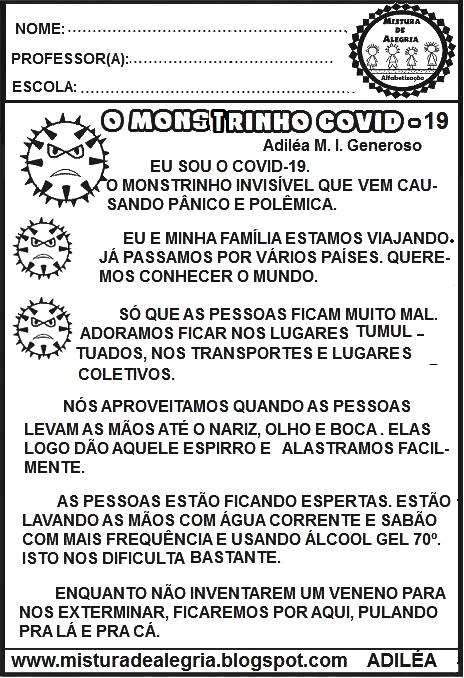 Resolvi criar um livrinho: O Monstrinho COVID-19, e hoje eu estou postando as atividades de interpretação deste livrinho.Este é um tema mundial, polêmico e muito preocupante.