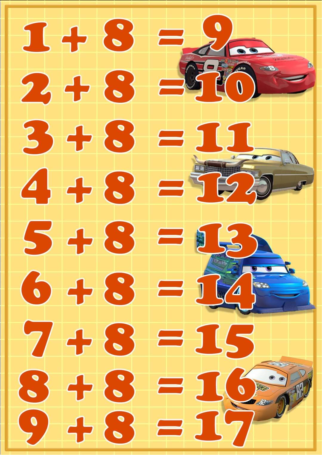 Tabuada de adição Tabuada de adição para educação infantil com o tema CARRINHOS….