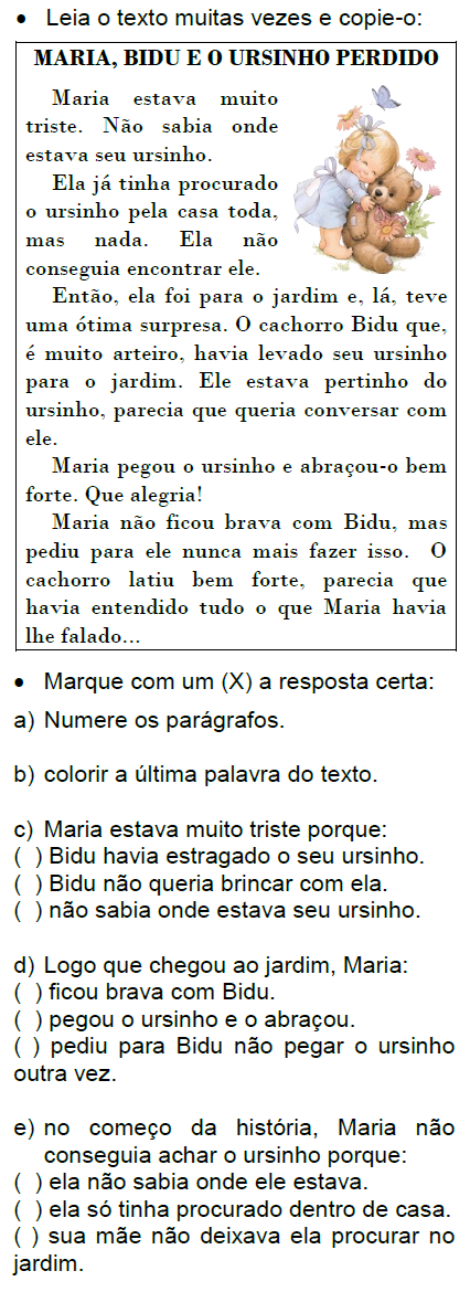 TEXTO: MARIA, BIDU E O URSINHO PERDIDO