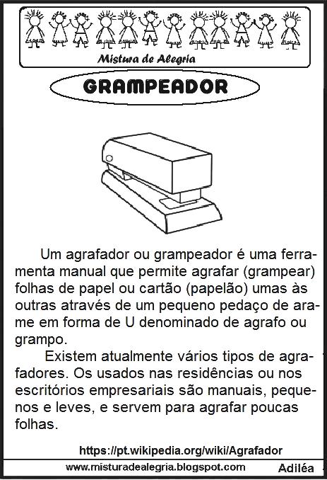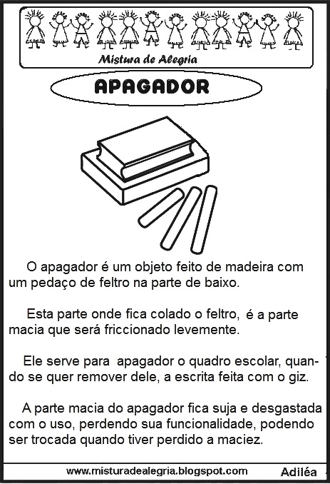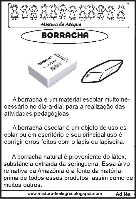 Faça o estudo de cada texto informativo, sobre os objetos escolares separadamente e no final, monte um livrinho. O texto informativo é um texto em que o escritor expõe brevemente um tema, fato ou circunstância ao leitor.
