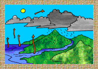 O ciclo da água acontece da seguinte forma: o sol aquece parte da água dos rios, mares, lagos, e ocorre a evaporação. Esse vapor sobe até muito alto na atmosfera. Como no alto da atmosfera é frio, esse vapor transforma-se em gotinhas que juntas formam as nuvens. Quando as nuvens ficam muito pesadas, começa a chover.