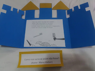 - Confeccione tarjetas e cole os títulos e autores dos livros que suas partes foram coladas nos castelos.