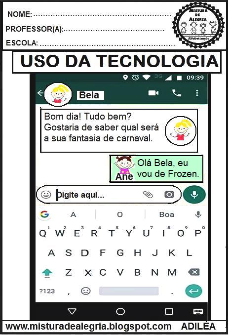 Bom dia, trago para vocês estas atividades sobre o uso da tecnologia em sala de aula, que acabei de criar sobre o carnaval – gênero textual: diálogo.