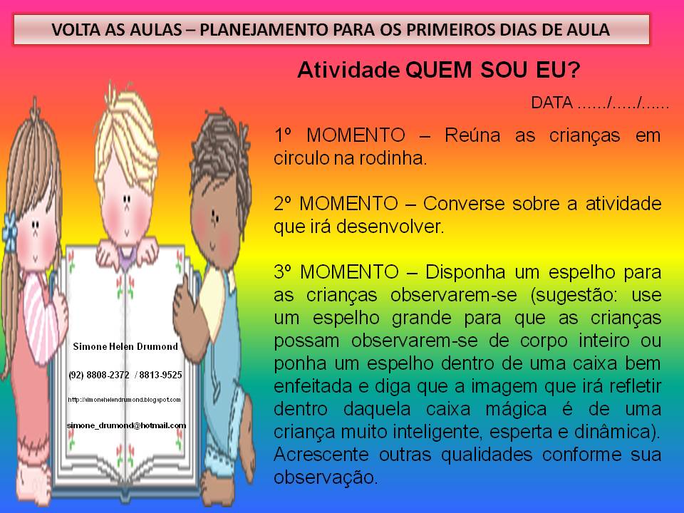VOLTA AS AULAS -PLANEJAMENTO PARA OS PRIMEIROS DIAS DE AULAS